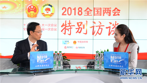 3月14日,全國人大代表、南京市市長藍(lán)紹敏(左)做客新華網(wǎng)2018全國兩會特別訪談。新華網(wǎng) 楊濛攝