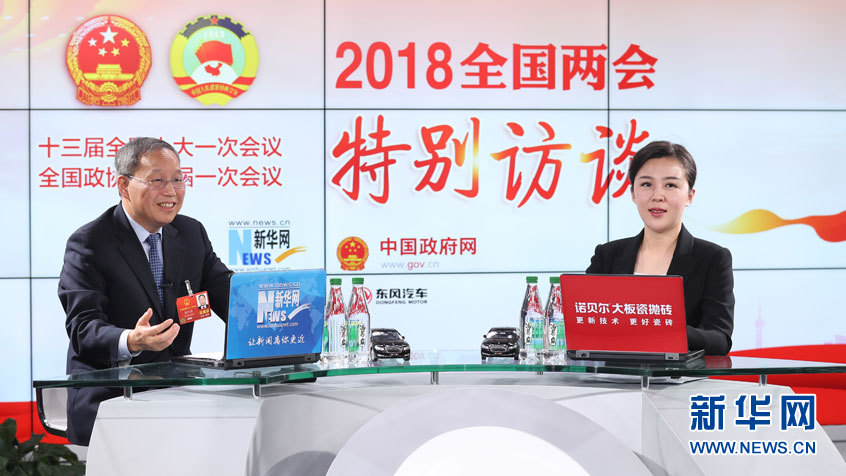 圖為15日,全國人大代表、重慶小康工業(yè)集團(tuán)股份有限公司董事長張興海做客新華網(wǎng)2018全國兩會(huì)特別訪談。新華網(wǎng) 郭小天攝