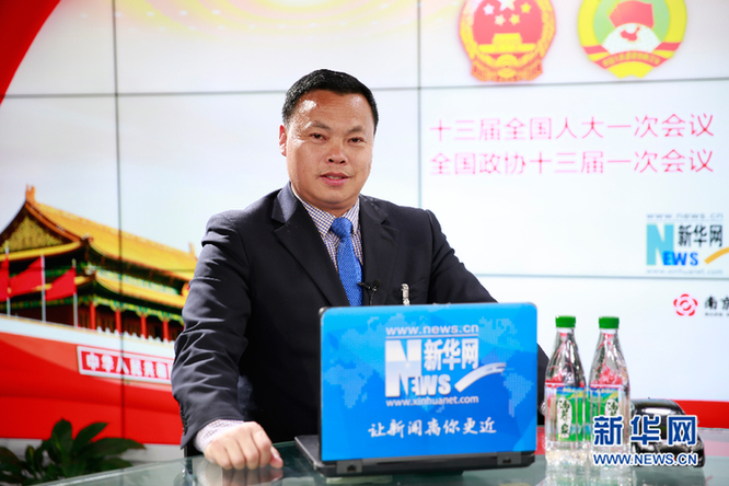 圖為河南省平頂山市寶豐縣大黃村黨支部書(shū)記馬豹子做客新華網(wǎng)2018全國(guó)兩會(huì)特別訪(fǎng)談