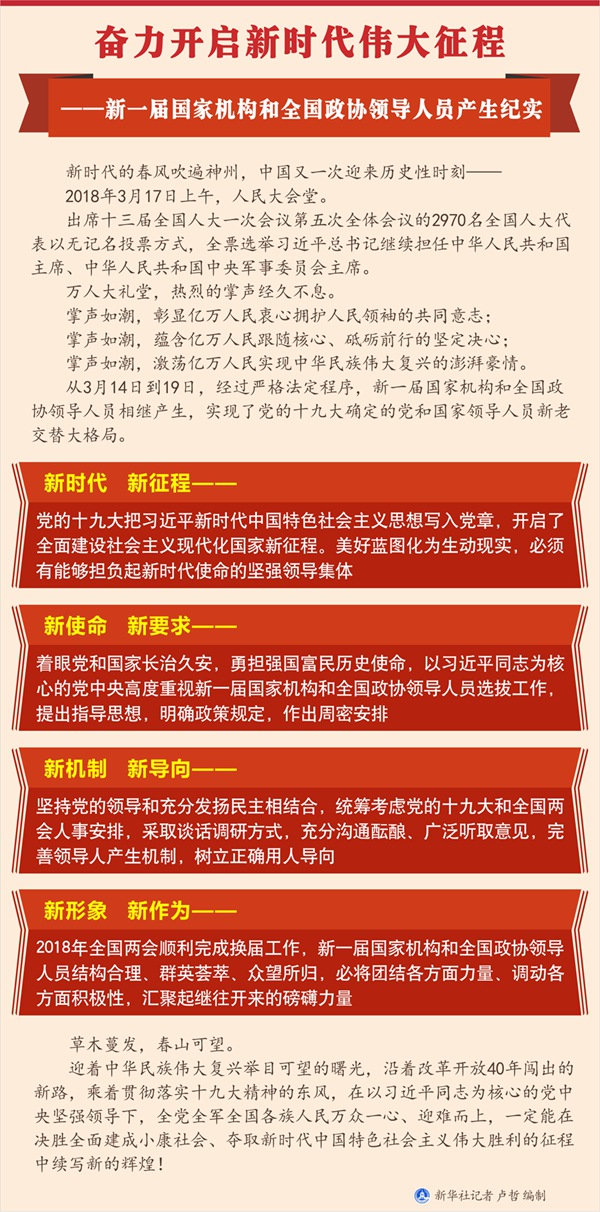 新華社北京3月19日電? 題:奮力開啟新時代偉大征程——新一屆國家機構和全國政協(xié)領導人員產生紀實