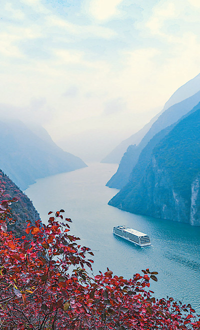 游輪在長江瞿塘峽行駛。文振效攝(人民視覺)