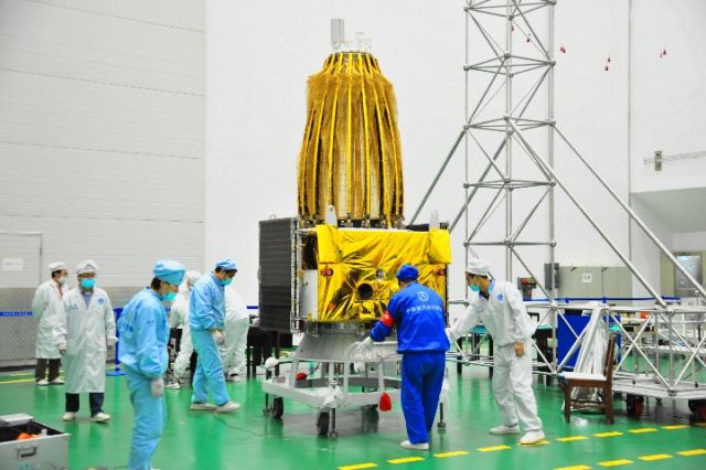 發(fā)射前的鵲橋號中繼衛(wèi)星。(中國航天科技集團五院供圖)
