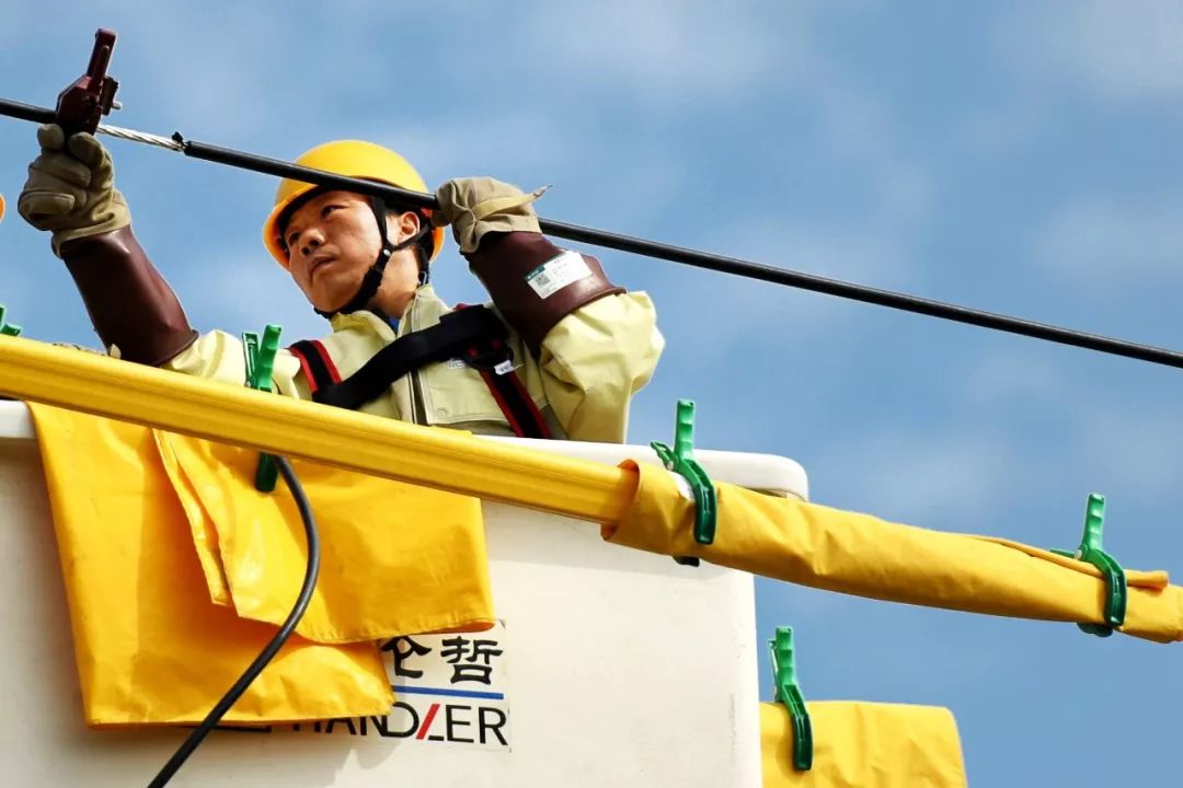 2018-09-06,山東濟(jì)南。一名電力員工專注進(jìn)行線路帶電作業(yè)。作者:CBT
