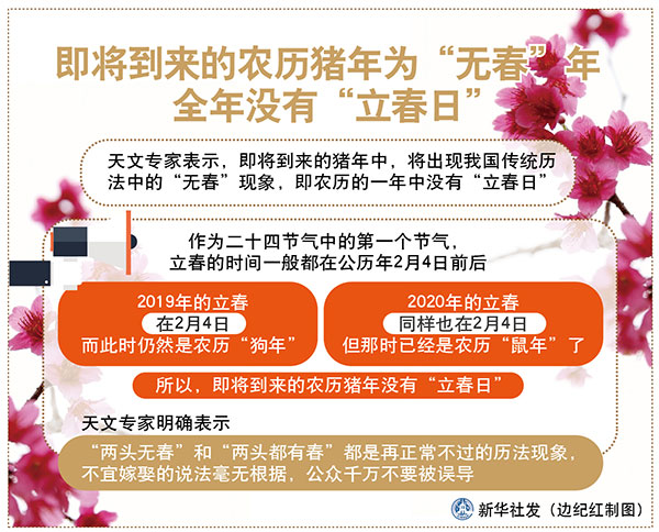 圖表:即將到來(lái)的農(nóng)歷豬年為“無(wú)春”年 全年沒(méi)有“立春日” 新華社發(fā) 邊紀(jì)紅 制圖