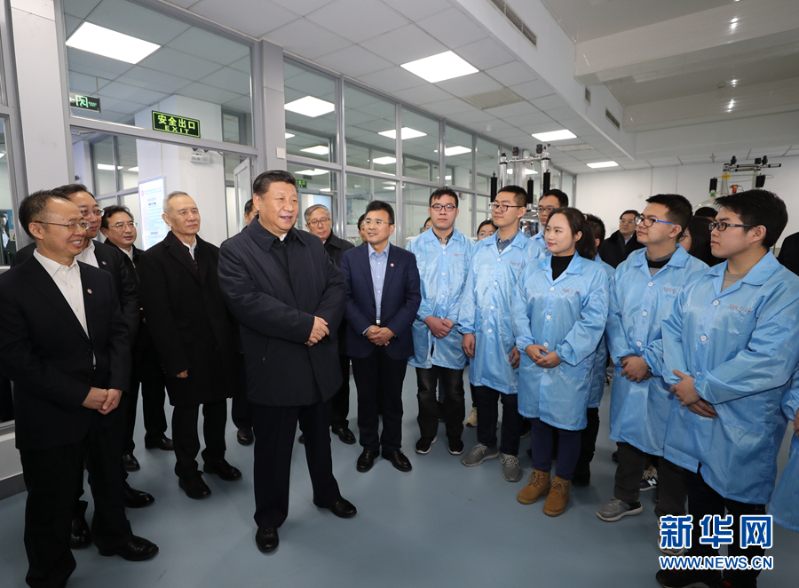 1月16日至18日,中共中央總書記、國(guó)家主席、中央軍委主席習(xí)近平在京津冀考察,主持召開(kāi)京津冀協(xié)同發(fā)展座談會(huì)并發(fā)表重要講話。這是1月17日上午,習(xí)近平在天津南開(kāi)大學(xué)元素有機(jī)化學(xué)國(guó)家重點(diǎn)實(shí)驗(yàn)室同師生親切交流。 新華社記者 丁林 攝