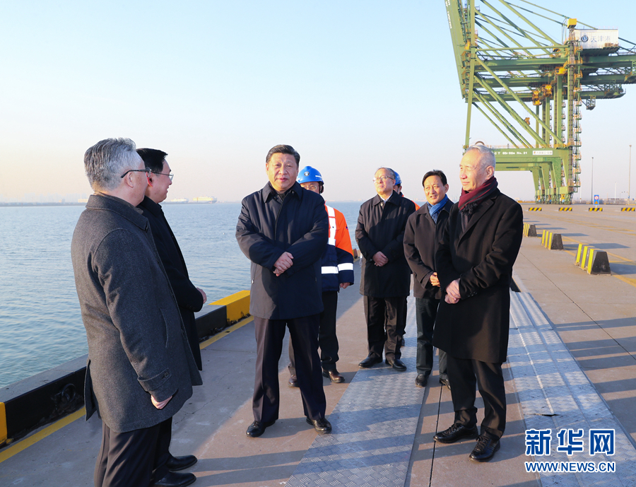 1月16日至18日,中共中央總書記、國(guó)家主席、中央軍委主席習(xí)近平在京津冀考察,主持召開(kāi)京津冀協(xié)同發(fā)展座談會(huì)并發(fā)表重要講話。這是1月17日下午,習(xí)近平在天津港碼頭考察。 新華社記者 謝環(huán)馳 攝