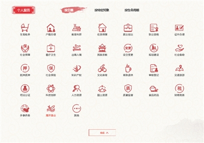 北京市政務(wù)服務(wù)網(wǎng)個(gè)人服務(wù)項(xiàng)按主題分類。網(wǎng)絡(luò)截圖