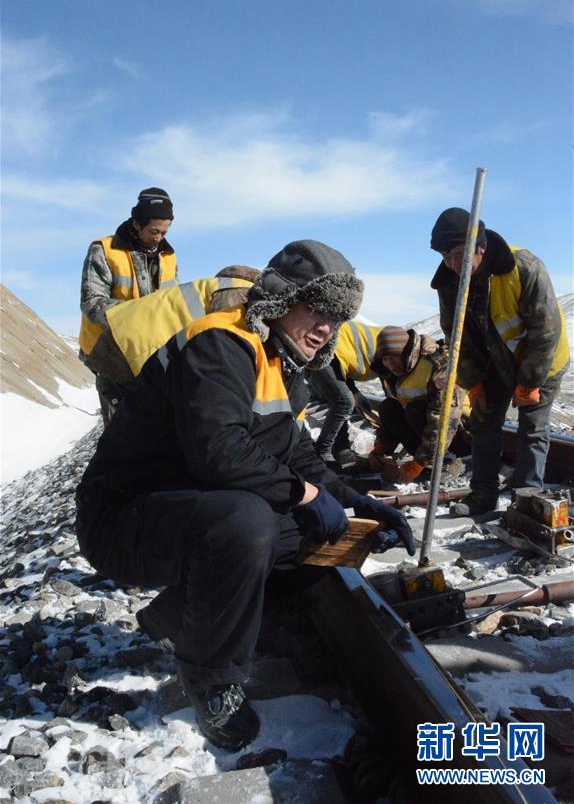 天剛蒙蒙亮,在昆侖山腹地楚瑪爾河車站附近,一陣陣雄渾有力的吼聲混雜著機器聲,此起彼伏。青藏鐵路格爾木工務(wù)段望昆線路養(yǎng)護車間副主任于本蕃和工友正趁著早晨沒有列車經(jīng)過的“天窗點”,加緊作業(yè)。