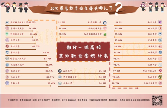 一直以來(lái),“北上廣”是高校畢業(yè)生心中的“白月光”,即使沒(méi)戶口,去一線城市闖一闖也是不少大學(xué)生的共識(shí)。然而記者梳理后發(fā)現(xiàn),一流高校畢業(yè)生的京外就業(yè)率普遍超過(guò)50%。