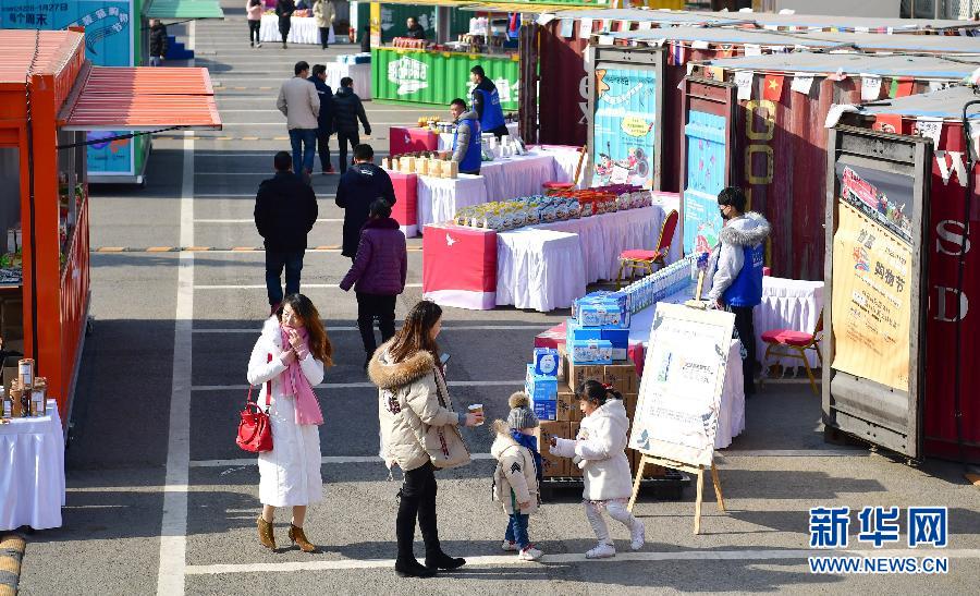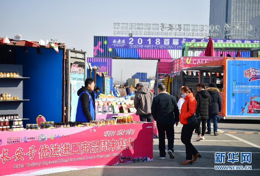 在陜西西安國際港務(wù)區(qū),消費(fèi)者在“長安號(hào)”優(yōu)選進(jìn)口商品周末集市上參觀(1月19日攝)。新華社記者 邵瑞 攝