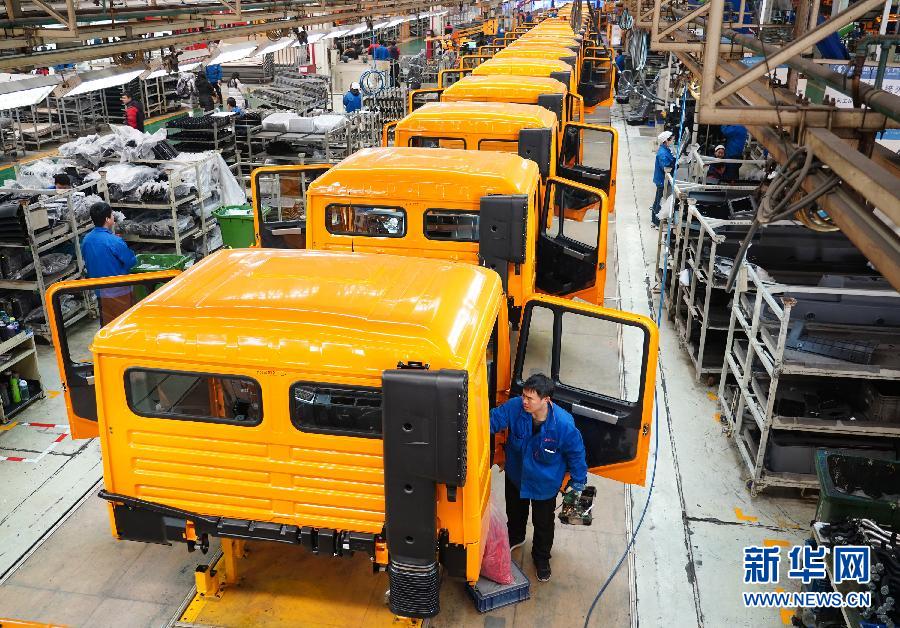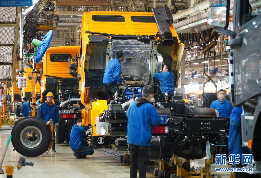 工人在陜汽集團(tuán)下屬的陜重汽汽車總裝配廠車間流水線上作業(yè)(1月17日攝)。 新華社記者 邵瑞 攝