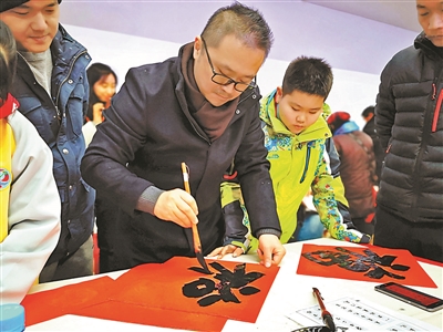 劉建豐說,今年平谷廟會(huì)期間,書法家們已排好值班表,每天都將駐守在廟會(huì)的書法大棚下,為大家繼續(xù)免費(fèi)現(xiàn)場(chǎng)寫“?!?、寫春聯(lián)。(記者 林艷)
