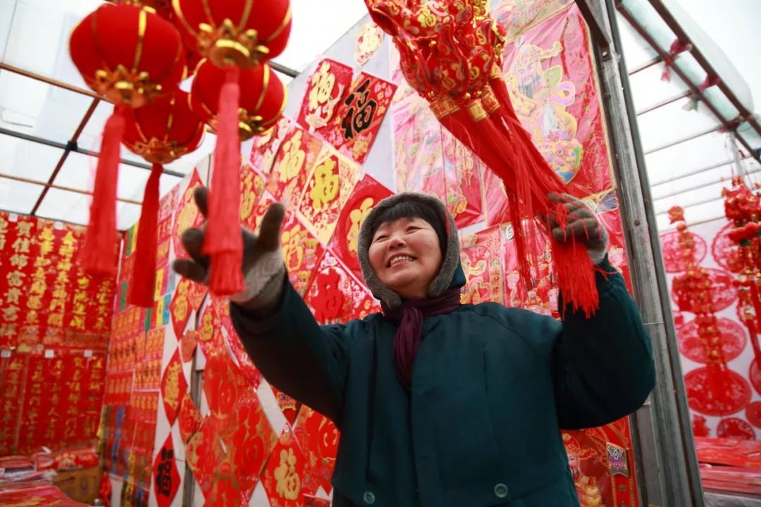 2019-01-27,遼寧省東港市。春節(jié)前夕,一位阿姨在對聯(lián)市場挑選燈籠。作者:青春