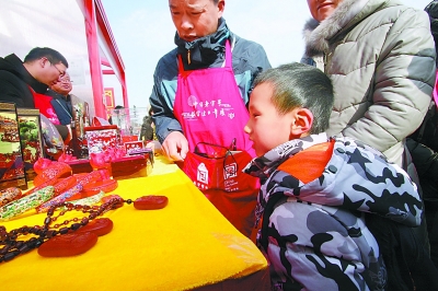 享受了一把精神“大餐”過后,如果也能獲得一些物質(zhì)上的收獲,那就再完美不過了。在慈寧宮花園、慈寧門外廣場,“中華老字號故宮過大年”熱鬧非凡,來自山東、北京、天津、山西等10個省市以及5家非物質(zhì)文化遺產(chǎn)傳承人,共計150家單位參加此次活動。