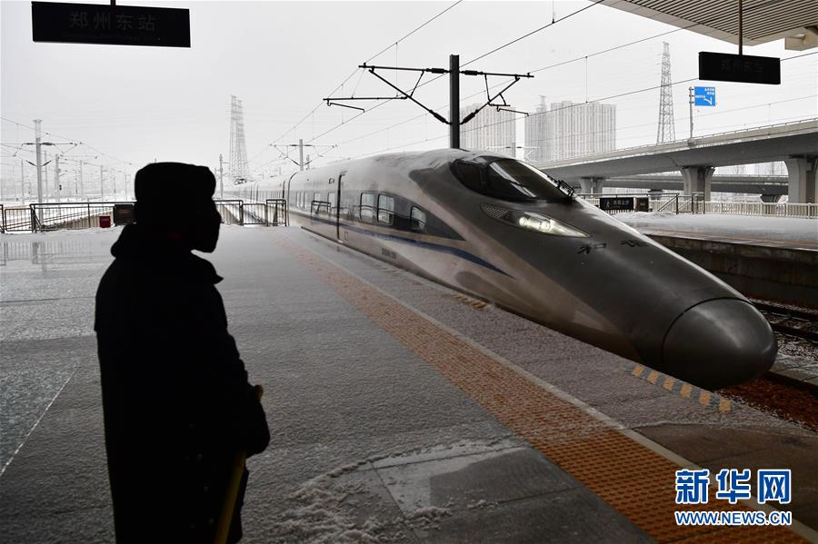 2月10日,一列高鐵列車(chē)迎著風(fēng)雪駛?cè)豚嵵輺|站。當(dāng)日是農(nóng)歷正月初六,多地迎來(lái)返程客流高峰。 新華社記者 馮大鵬 攝