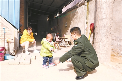 冬日溫暖的陽(yáng)光灑在農(nóng)家小院內(nèi),董星濤開(kāi)心地與兒子玩起了皮球。聞蘇軼攝