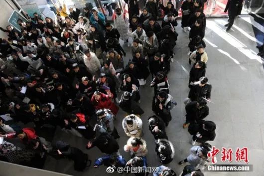 2月13日,北京東棉花胡同里,考生排隊等待參加中央戲劇學(xué)院招生專業(yè)考試。逾6.7萬人次報考,為歷年最高。