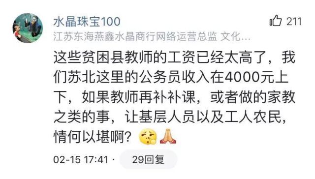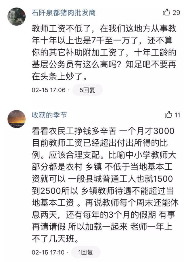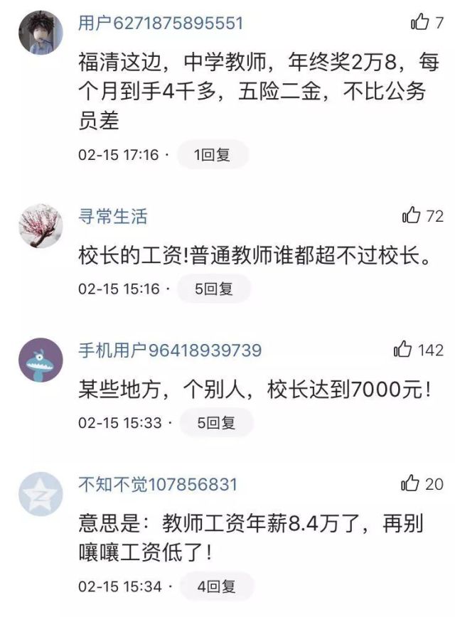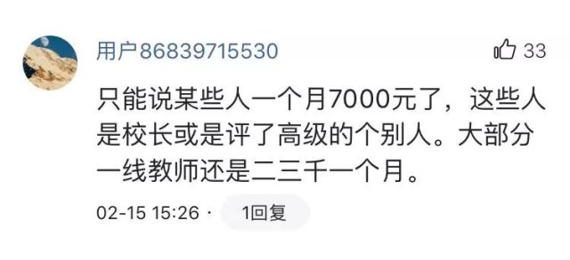 2月15日,經(jīng)濟(jì)日?qǐng)?bào)新聞客戶端推送消息《教育部:某些國(guó)家級(jí)少數(shù)民族貧困縣教師月薪已達(dá)7000元》,引起大家的強(qiáng)烈反響。對(duì)于目前大多數(shù)教師的薪資水平、怎么看待教師待遇、怎么評(píng)價(jià)待遇的高低才客觀等問題,眾多網(wǎng)友進(jìn)行了熱烈的討論,有教師還曬出了自己工資單……