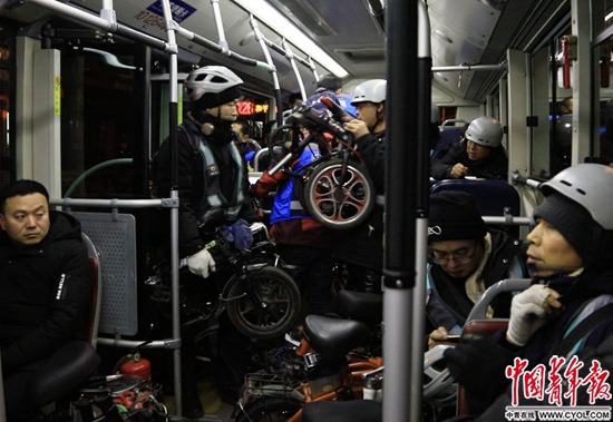 夜30路上有許多他的“車友”,其中一些是專門去鳳凰嶺等地爬山的,拄著登山杖,戴著裹住下巴的頭巾,背著登山包,這批人自稱“山友”。車?yán)锬挲g最大的是一對老夫婦,83歲了,每天上車都有人把最穩(wěn)當(dāng)?shù)淖蛔尳o他們。車上曾經(jīng)有位老人,“出勤率”比別人都高,被戲稱為“車長”。后來“車長”搬了家,改乘其他線路了。這些老人回程時往往已經(jīng)天亮,但他們大多不愛坐地鐵,覺得“公交車更方便”。