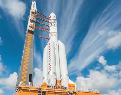 2016年11月,長征五號在海南文昌發(fā)射場成功首飛,成為中國運(yùn)載能力最大的火箭。圖為長征五號在發(fā)射架上。(新華社發(fā))