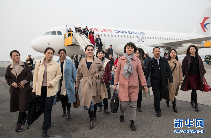 3月2日,來自甘肅省的全國人大代表乘坐飛機(jī)抵達(dá)北京。 新華社記者金立旺攝