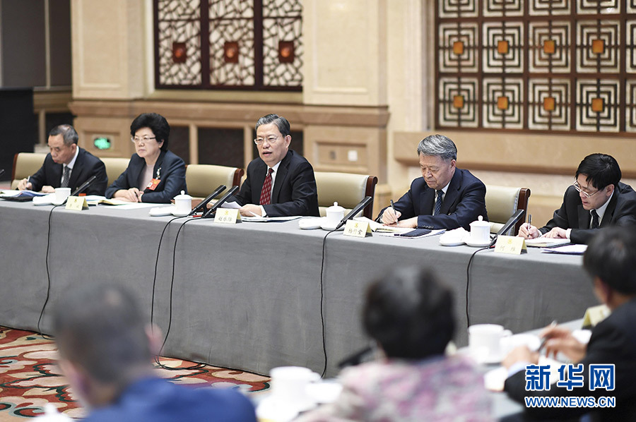 3月4日,中共中央政治局常委、全國人大常委會委員長栗戰(zhàn)書看望出席全國政協(xié)十三屆二次會議的民革、臺盟、臺聯(lián)界委員并參加討論。 新華社記者 王曄 攝