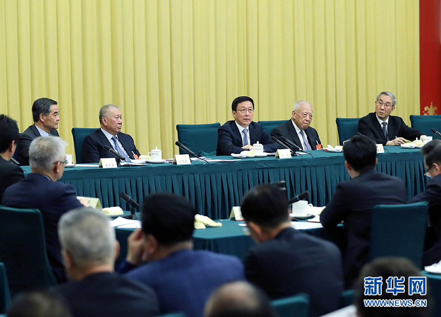 3月4日,中共中央政治局常委、國務(wù)院副總理韓正看望出席全國政協(xié)十三屆二次會議的港澳地區(qū)全國政協(xié)委員并參加討論。 新華社記者 劉衛(wèi)兵 攝