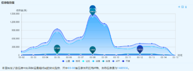 新華睿思大數(shù)據(jù)通過監(jiān)測新聞網(wǎng)站、論壇、微信、微博、APP、平媒6個信源,分析結(jié)果顯示,截至目前,全國兩會開幕以來,關(guān)于社會保障的話題共1094712個。