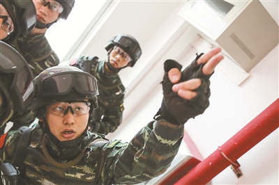 在樓房搜索應(yīng)用射擊訓練開始前,高雄跟隊員們講解戰(zhàn)術(shù)技術(shù)要領(lǐng)。李軍 攝