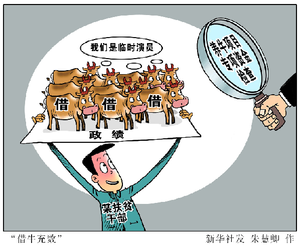 為應(yīng)對(duì)國(guó)務(wù)院扶貧辦養(yǎng)牛項(xiàng)目專(zhuān)項(xiàng)資金檢查,居然想出臨時(shí)借用百余頭牛放入牛圈,以營(yíng)造養(yǎng)牛項(xiàng)目“紅火”的主意。吉林省紀(jì)委近日通報(bào)一起借牛假冒政績(jī)的典型問(wèn)題,相關(guān)責(zé)任人受到嚴(yán)肅查處問(wèn)責(zé)。“借牛充數(shù)”事件敲響警鐘:脫貧攻堅(jiān)越到最后時(shí)刻越要響鼓重錘,決不能搞急功近利、虛假政績(jī)的東西。