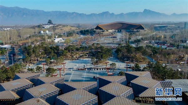 3月27日無人機拍攝的北京世園會園區(qū)。新華社記者 馬曉冬 攝