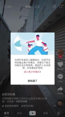 以抖音和快手為例,“青少年模式”開(kāi)啟后,用戶每天使用時(shí)長(zhǎng)不超過(guò)40分鐘,而且晚上10點(diǎn)至早上6點(diǎn)無(wú)法使用。另外,無(wú)法開(kāi)啟直播和瀏覽同城頁(yè)面,也無(wú)法進(jìn)行打賞、充值、提現(xiàn)、直播等操作。這些功能只有通過(guò)輸入密碼,關(guān)閉青少年模式才能再度開(kāi)啟。