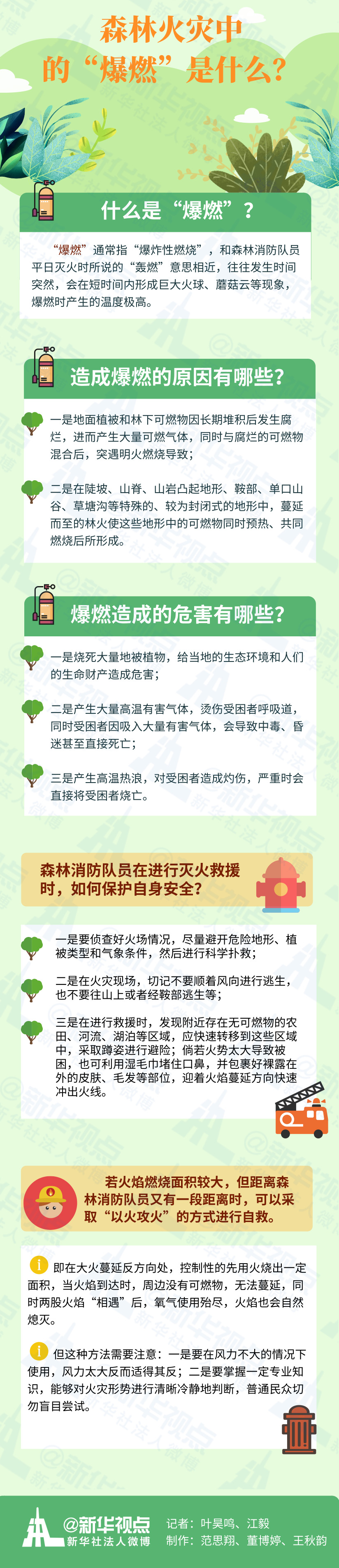 什么是“爆燃”?中國森林消防學科帶頭人白夜說:“‘爆燃’ 通常指‘爆炸性燃燒’,和森林消防隊員平日滅火時所說的‘轟燃’意思相近,往往發(fā)生時間突然,會在短時間內形成巨大火球、蘑菇云等現(xiàn)象,爆燃時產生的溫度極高。”