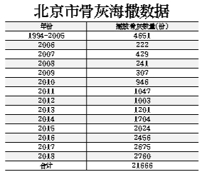 北青報記者了解到,從2014年至2016年,本市骨灰海葬量每年以20%左右的幅度增長。2018年,骨灰海葬占總安葬量比例達(dá)到3%。八寶山禮儀公司副總經(jīng)理王德東表示,去年本市撒海的骨灰有2700多份,計劃今年實現(xiàn)3000份。