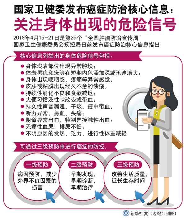 圖表:國家衛(wèi)健委發(fā)布癌癥防治核心信息:關(guān)注身體出現(xiàn)的危險(xiǎn)信號 新華社發(fā) 邊紀(jì)紅 制圖