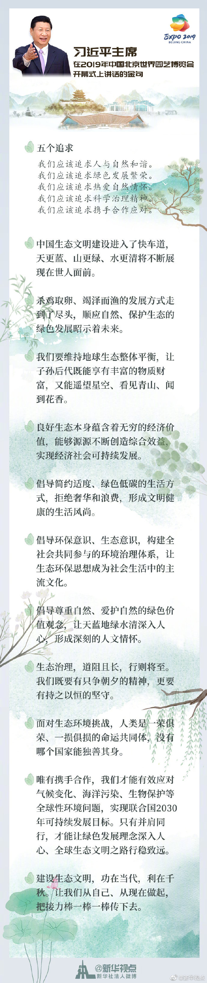 習(xí)近平在2019年中國(guó)北京世界園藝博覽會(huì)開幕式上講話的金句