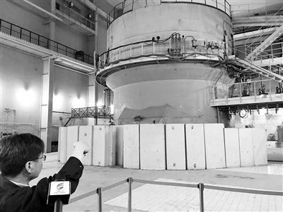 1958年,在蘇聯(lián)的幫助下,“一堆一器”建成投運(yùn),開啟了中國原子能時(shí)代。近日,在參加“壯麗70年·奮斗新時(shí)代”活動(dòng)期間,記者走進(jìn)中國原子能科學(xué)研究院。圖為近日工作人員在我國第一座重水反應(yīng)堆前講述相關(guān)歷史。本報(bào)記者 陳瑜 攝