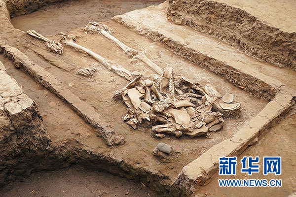 這是黃山遺址發(fā)現(xiàn)的疑似屈家?guī)X文化氏族首領(lǐng)的高等級(jí)墓葬(4月29日攝)。 新華社記者 袁月明 攝