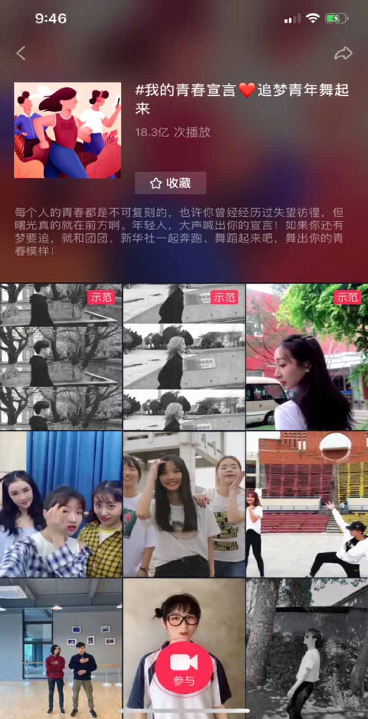為紀念五四運動100周年,新華社全媒報道平臺聯(lián)合團中央開設 “我的青春宣言?追夢青年舞起來”話題。
