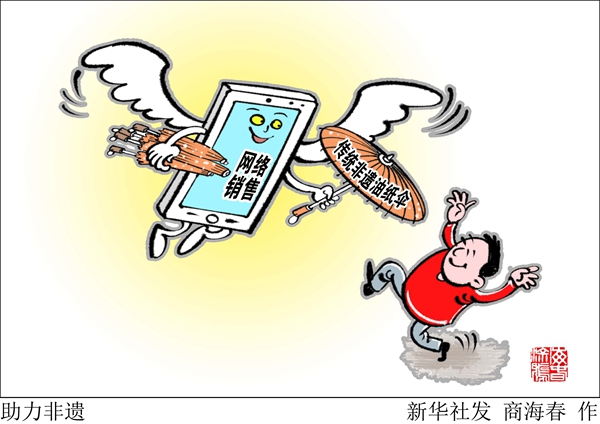 漫畫(huà):助力非遺 新華社發(fā) 商海春 作