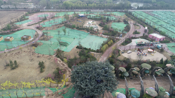 黃河大堤內(nèi)修建的違建項(xiàng)目法莉蘭童話王國(guó)主題樂園航拍。李鵬 尚昆侖 攝