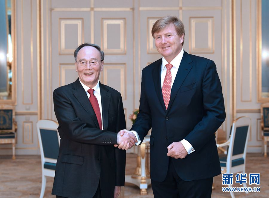 應(yīng)荷蘭首相呂特邀請,國家副主席王岐山當(dāng)?shù)貢r(shí)間5月28日至30日訪問荷蘭,分別會(huì)見威廉-亞歷山大國王和呂特首相。這是5月29日,王岐山在海牙會(huì)見荷蘭國王威廉-亞歷山大。 新華社記者 饒愛民 攝
