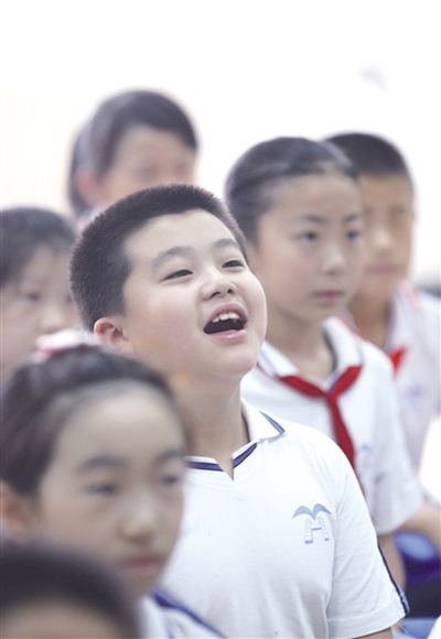 北京市育鴻中學組織中小學生收看太空授課。影像中國