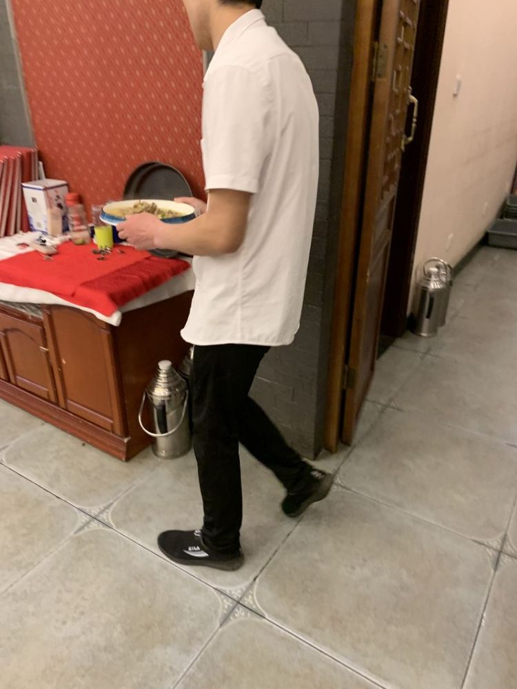 傳菜員端菜時(shí)未使用托盤(pán)。圖片來(lái)源:新華社客戶(hù)端