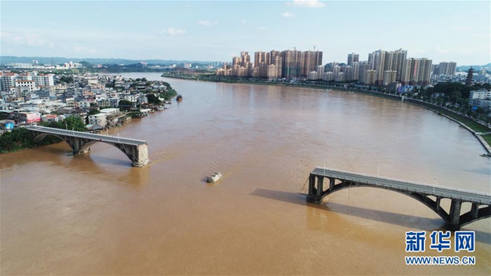 6月14日,從空中俯瞰垮塌的河源東江大橋(無人機(jī)拍攝)。新華社記者 王瑞平 攝