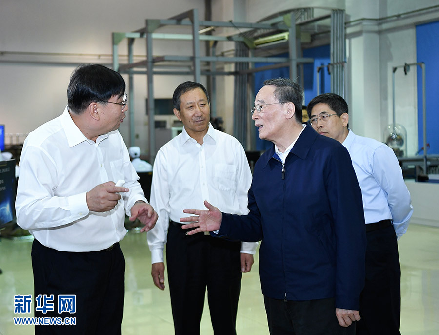6月13日至14日,國家副主席王岐山在黑龍江調(diào)研。這是6月14日,王岐山在哈爾濱工業(yè)大學考察。 新華社記者 燕雁 攝
