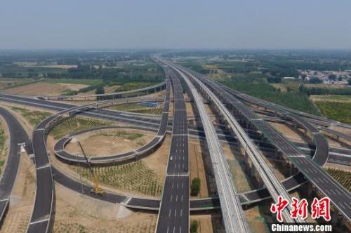 北京大興國(guó)際機(jī)場(chǎng)重要配套保障工程——北京大興機(jī)場(chǎng)高速公路和北京大興機(jī)場(chǎng)北線高速公路中段工程將于2019年6月底建成,并具備通車條件。 中新社記者 崔楠 攝