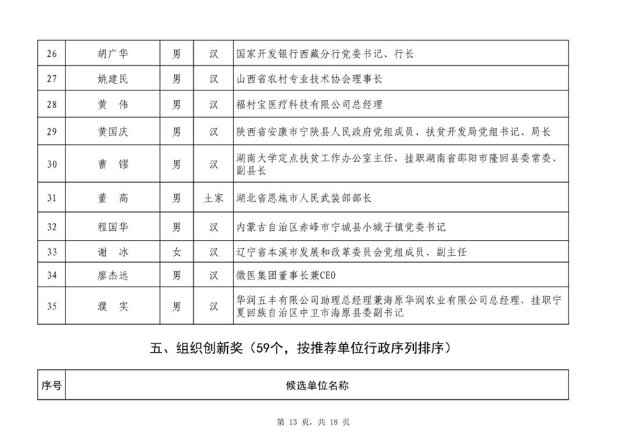 2019年全國脫貧攻堅(jiān)獎(jiǎng)初評(píng)候選人(單位)