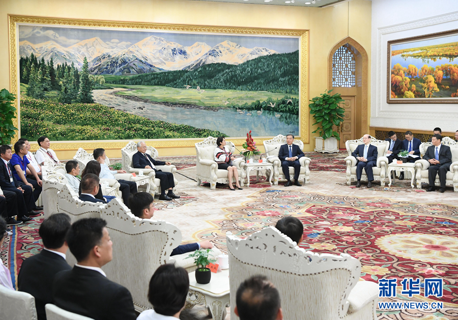 6月28日,中共中央政治局常委、全國政協(xié)主席汪洋在北京會(huì)見臺(tái)灣兩岸和平發(fā)展論壇榮譽(yù)顧問高金素梅率領(lǐng)的臺(tái)灣民意代表和少數(shù)民族參訪團(tuán)。 新華社記者 申宏 攝