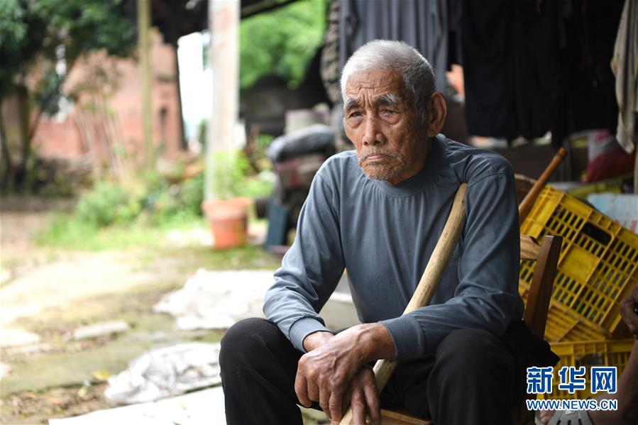 全州縣鳳凰嘴渡口旁,蔣濟(jì)勇老人向再走長征路的記者們講述自己11歲經(jīng)歷的湘江戰(zhàn)役(6月29日攝)。新華社記者 周華 攝
